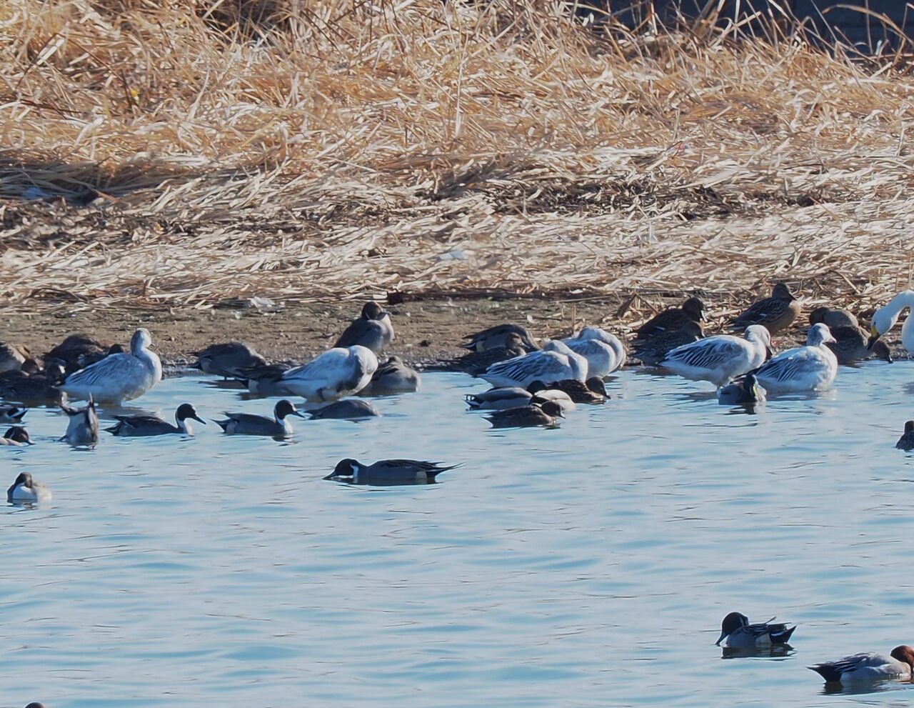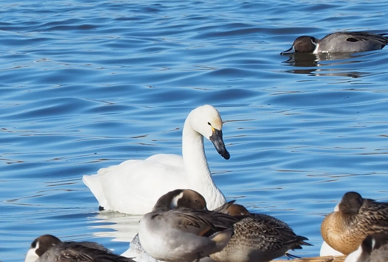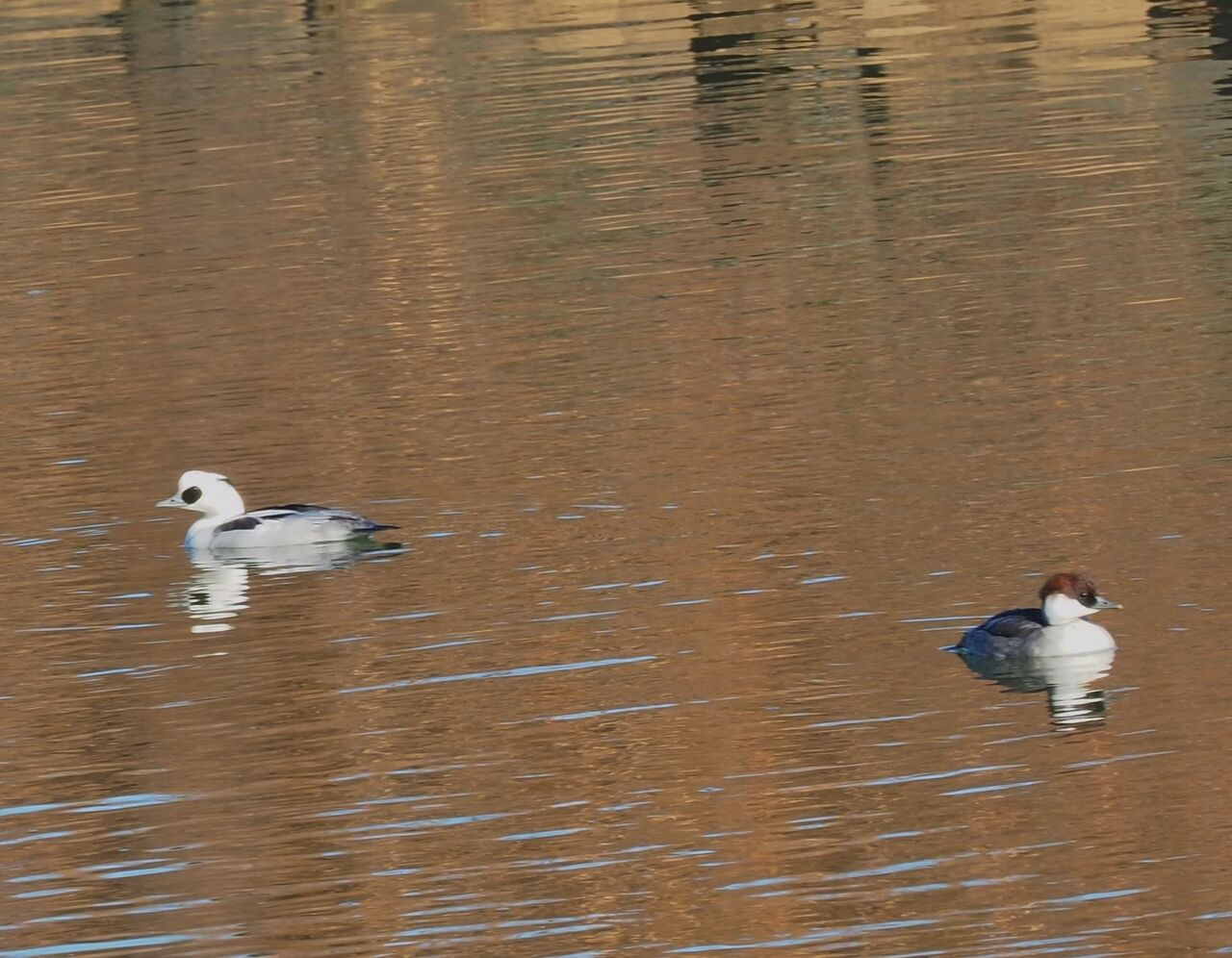 大沼の水鳥 アメリカコハクチョウ、ハクガン、ミコアイサ